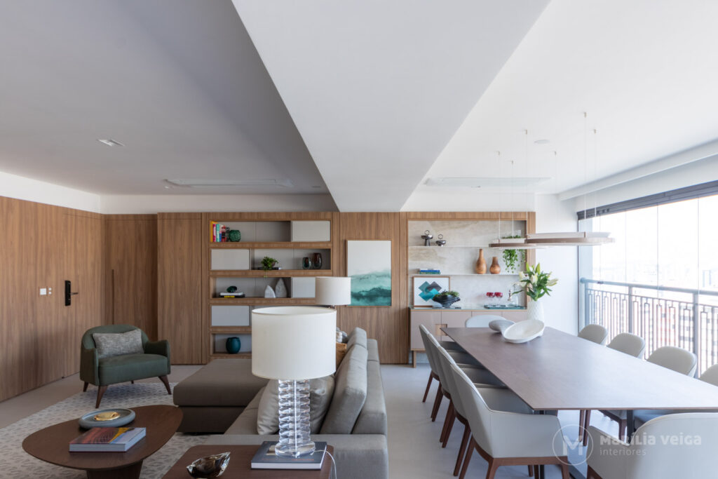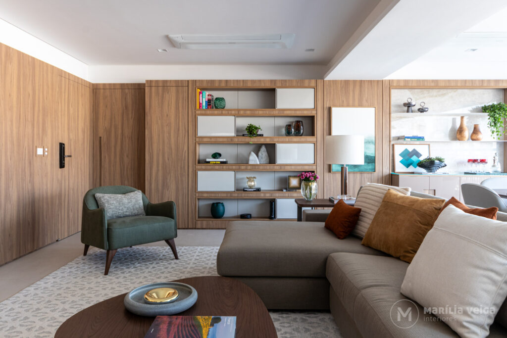 Um dos grandes destaques do projeto é a marcenaria.