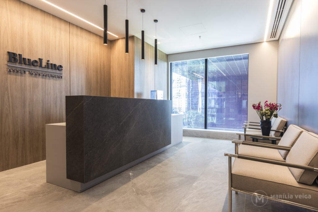 Dessa forma temos como resultado uma recepção elegante e imponente, que comunica imediatamente profissionalismo e bom gosto.