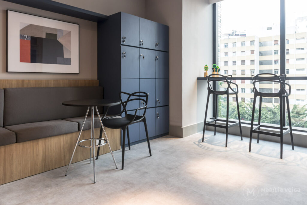 Cada vez mais presente em escritórios de alto padrão, a área de descompressão foi projetada como um ambiente essencial para a rotina da equipe trazendo o descanso e um pouco de informalidade, afinal a pausa é sempre bem vinda e importante para times de alta performance.