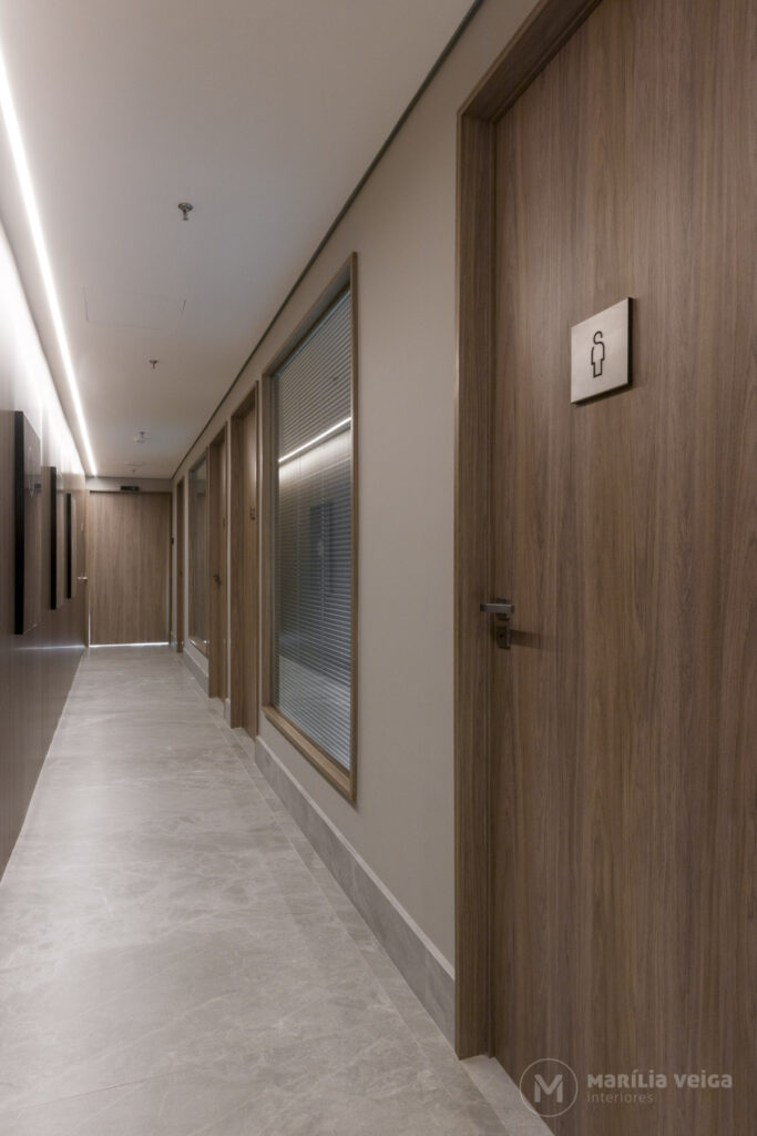Circulação e salas de reunião: funcionalidade com estética acolhedora